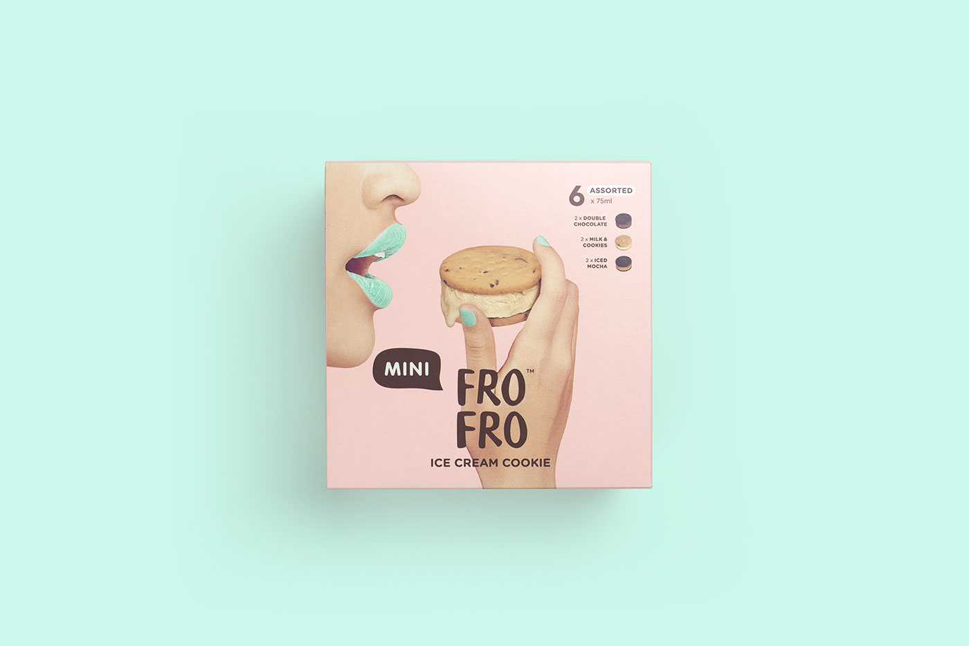 FRO FRO™is a new ice cream cookie brand. Sold primarily in supermarkets, it needed to stand out on the shelf amongst household brands like Häagen-Dazs and Ben & Jerry’s.